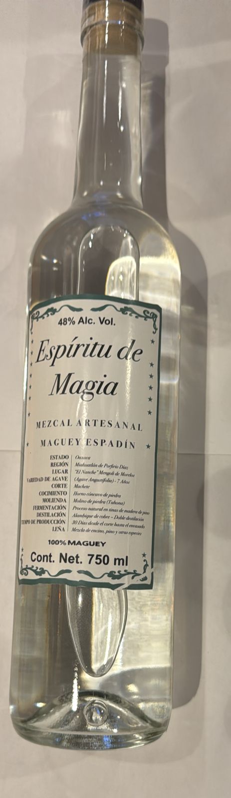 Un mezcal especial de doble destilación, elaborado en Miahuatlán de Porfirio Diaz, un mezcal con carácter y sabor herbal y terroso, esto por su proceso de elaboración, ya que está destilado con Cannabis. Con una graduación de 48% de alcohol un golpe en el paladar moderado, es perfecto como un mezcal digestivo o para beberse solo. Con todo el sabor herbal del Cannabis y lo terroso del sabor a su tierra, Miahuatlán.
